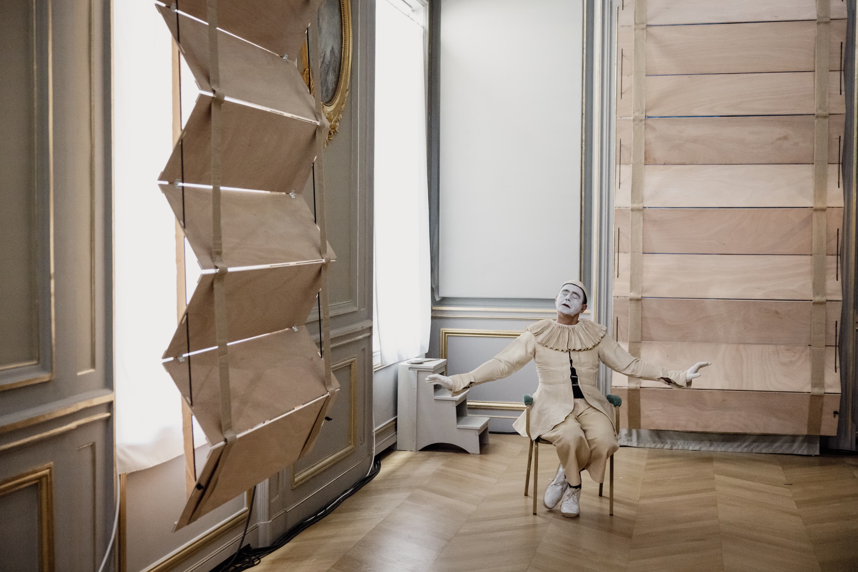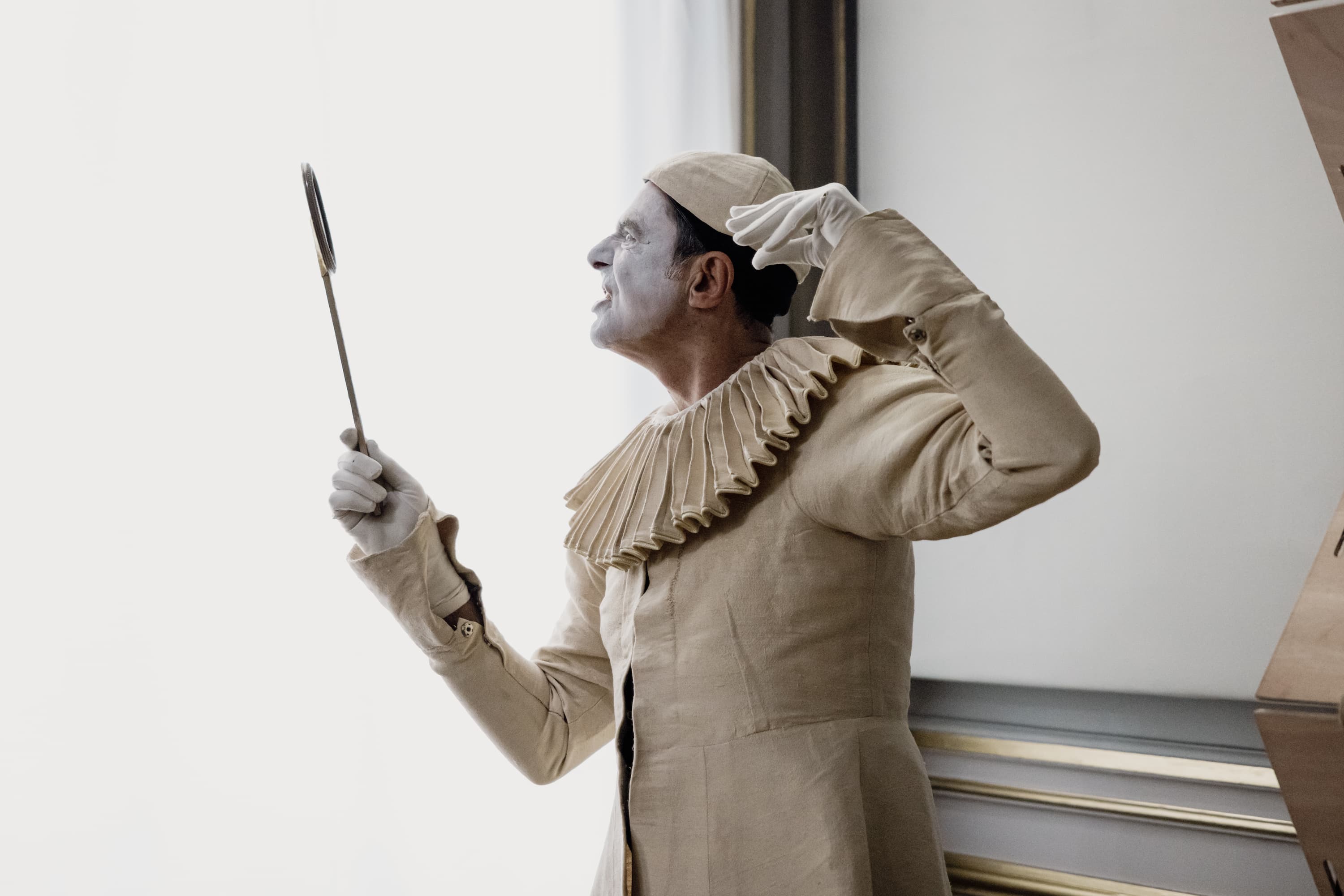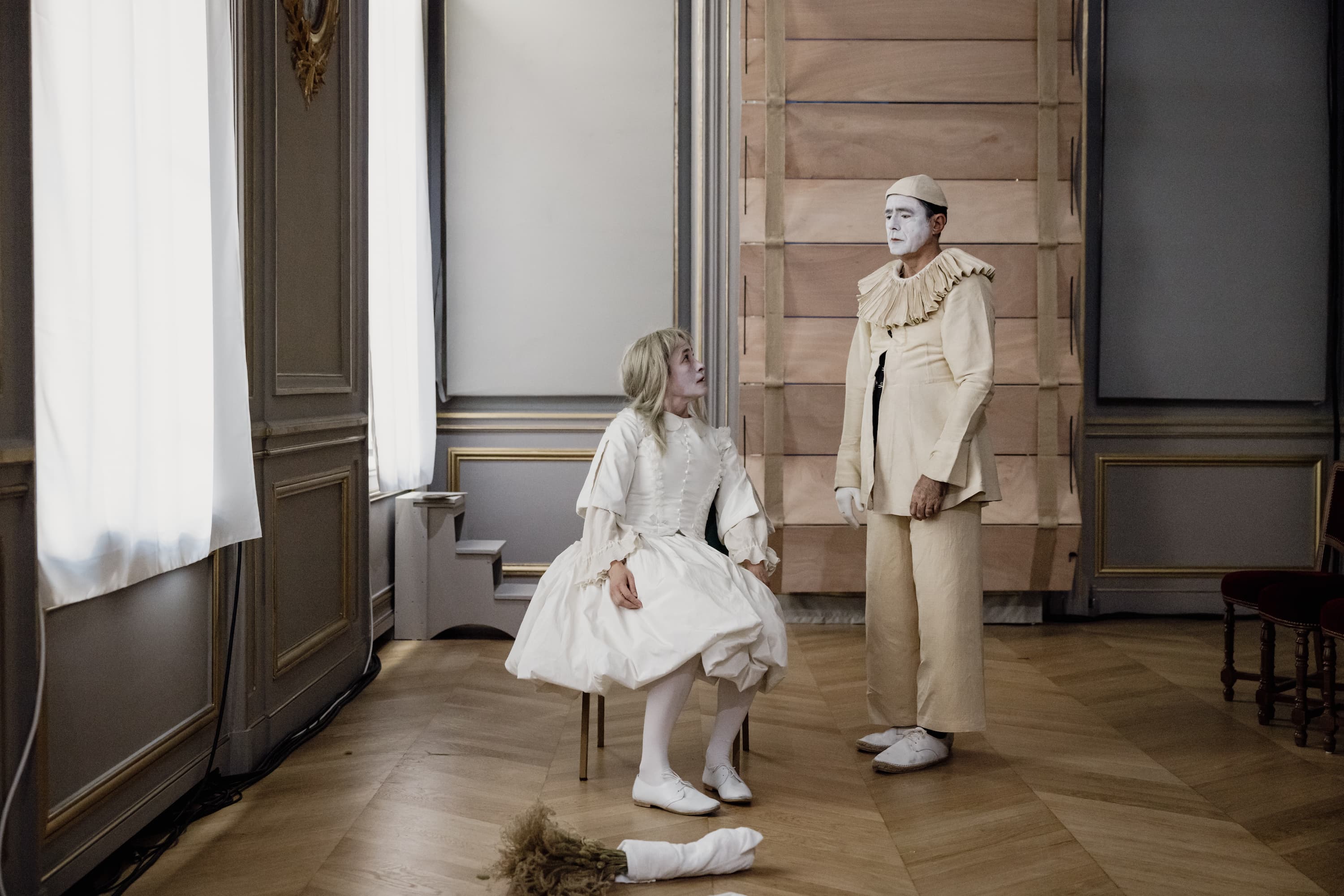 Écrit sous la forme d’une pantomime à la fin du XIXᵉ siècle, Le Voile de Pierrette raconte l’amour impossible entre Pierrot et Pierrette, promise à Arlequin. Sous ses airs enfantins, la fable d’Arthur Schnitzler dévoile la cruauté et le non-sens de son époque. En puisant dans cette forme oubliée, Marie-José Malis retrouve un théâtre du geste — un langage archaïque, viscéral et pur, où les corps, les visages et les rythmes traduisent la désorientation du monde moderne. La pantomime devient ainsi un poème visuel, un rite magique qui tente d’exorciser la noirceur et la férocité de notre temps.