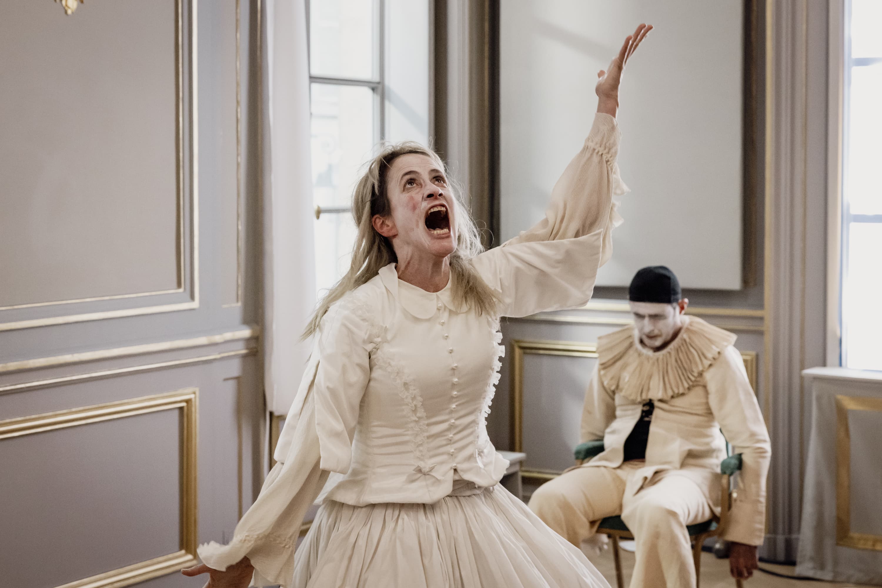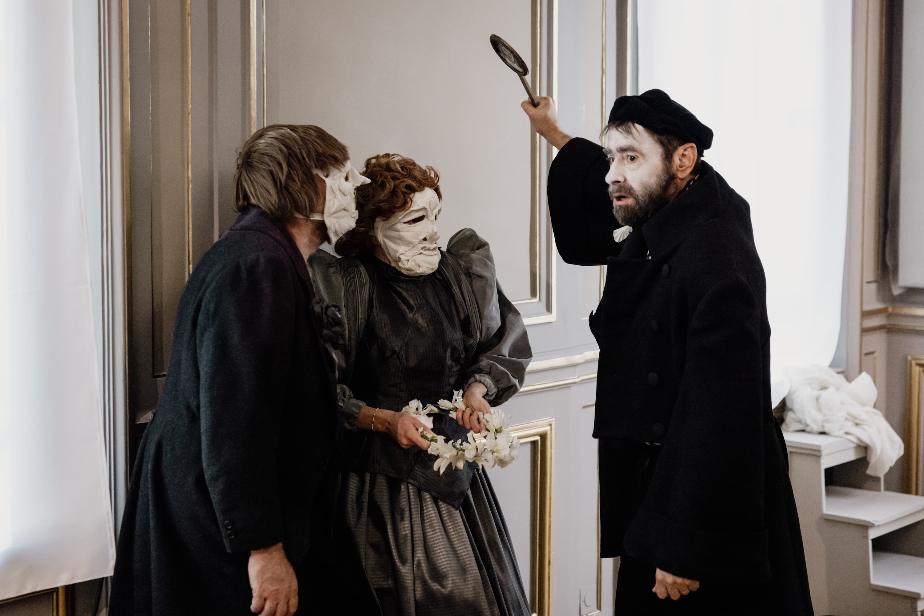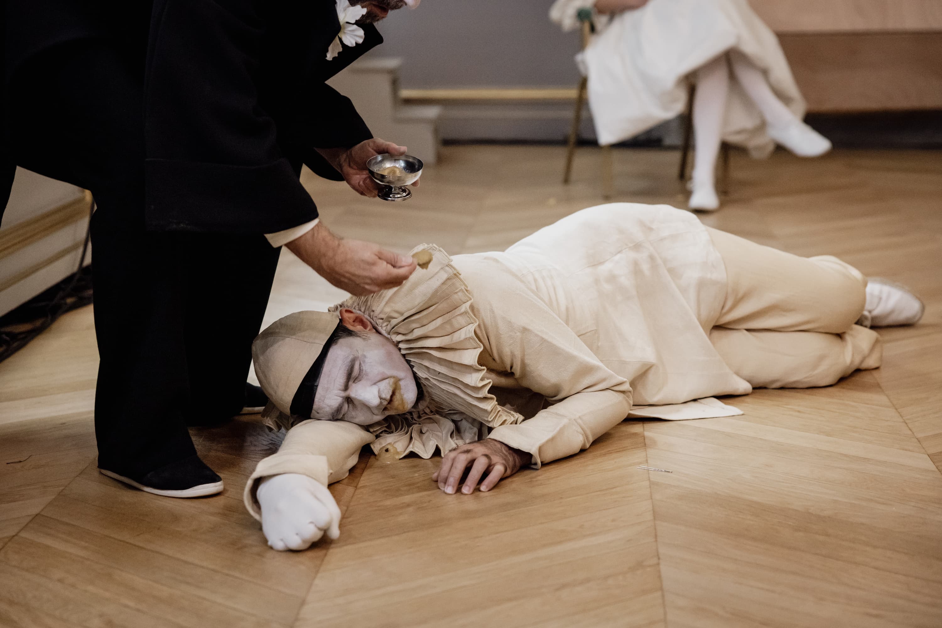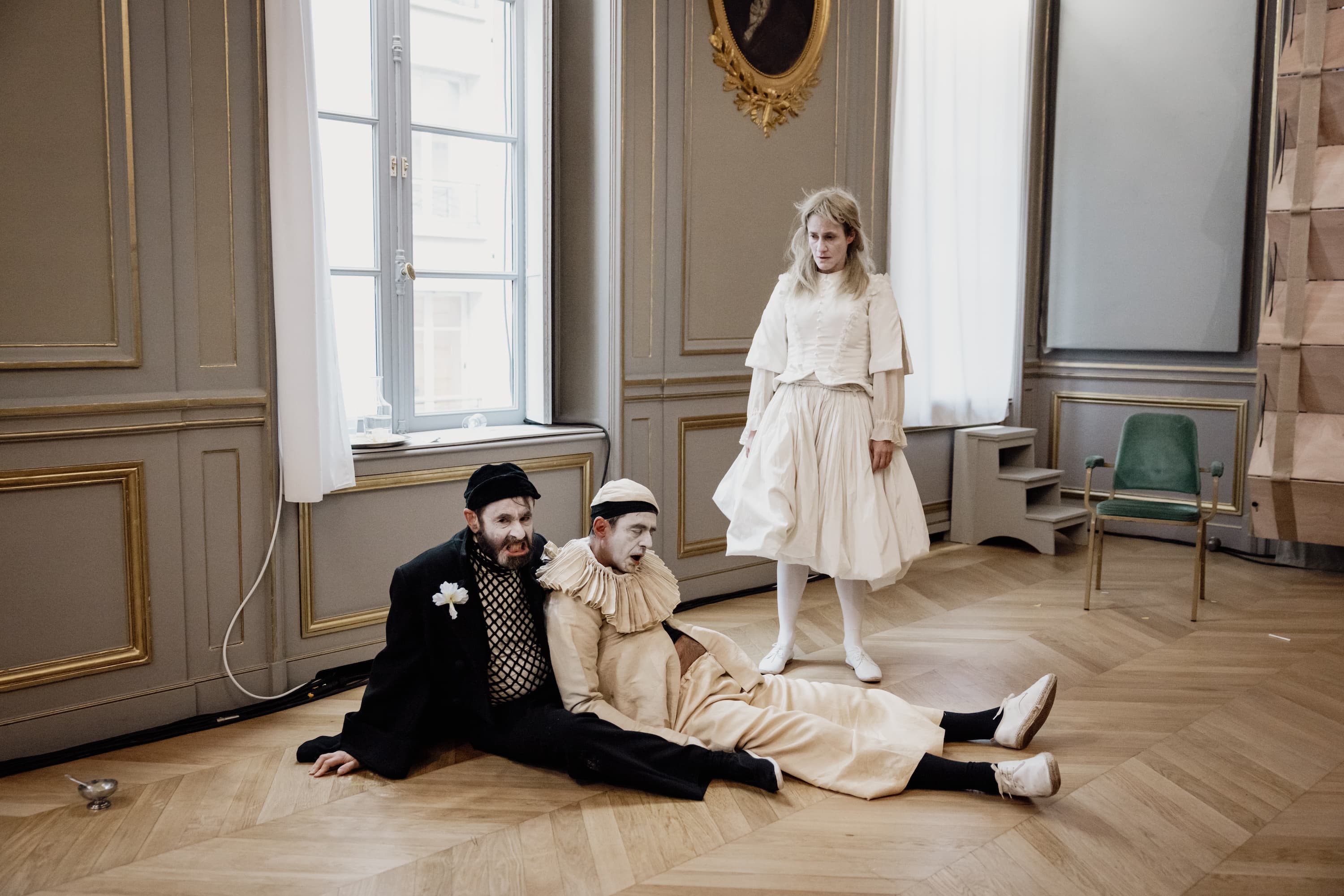 Écrit sous la forme d’une pantomime à la fin du XIXᵉ siècle, Le Voile de Pierrette raconte l’amour impossible entre Pierrot et Pierrette, promise à Arlequin. Sous ses airs enfantins, la fable d’Arthur Schnitzler dévoile la cruauté et le non-sens de son époque. En puisant dans cette forme oubliée, Marie-José Malis retrouve un théâtre du geste — un langage archaïque, viscéral et pur, où les corps, les visages et les rythmes traduisent la désorientation du monde moderne. La pantomime devient ainsi un poème visuel, un rite magique qui tente d’exorciser la noirceur et la férocité de notre temps.