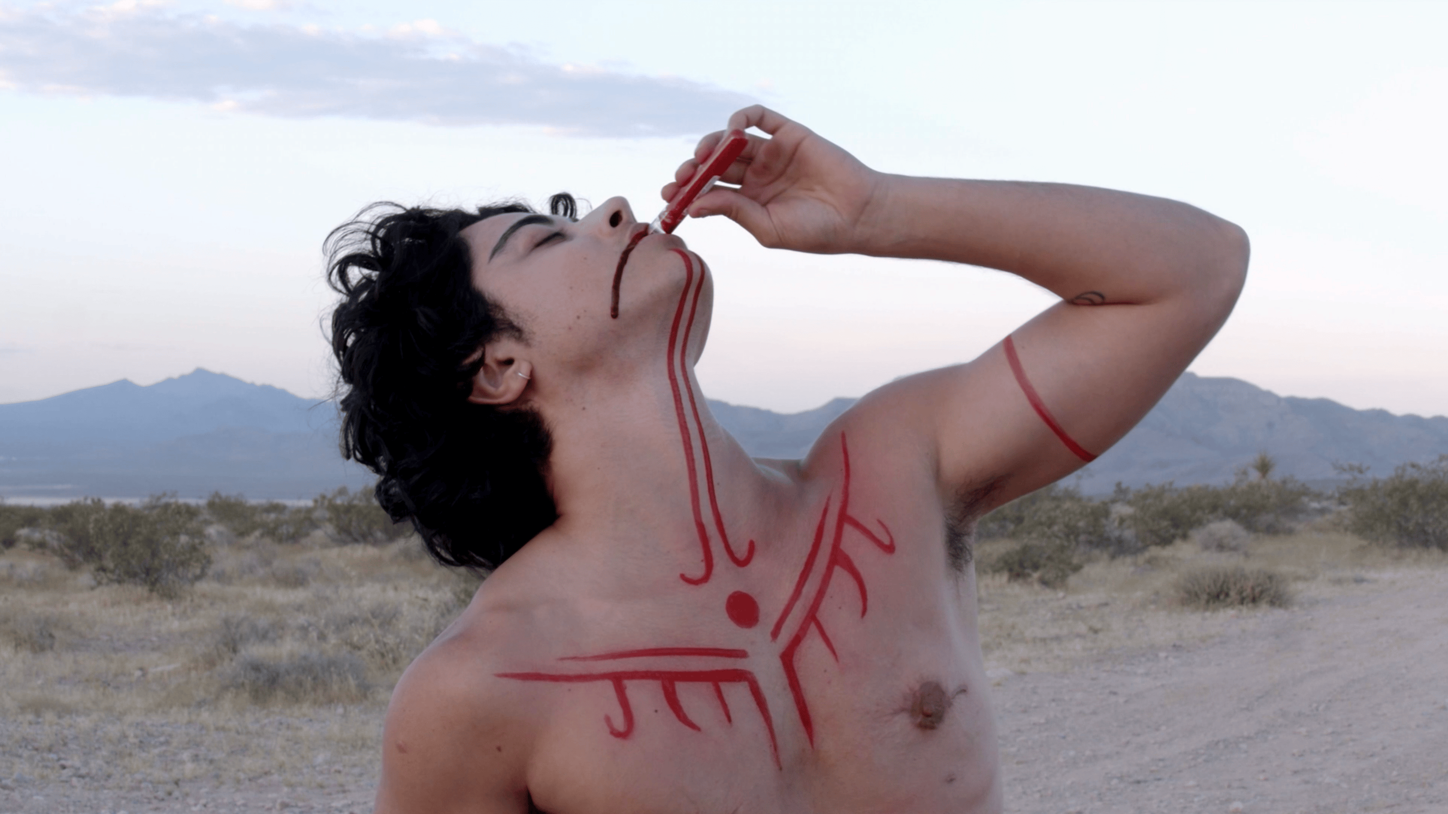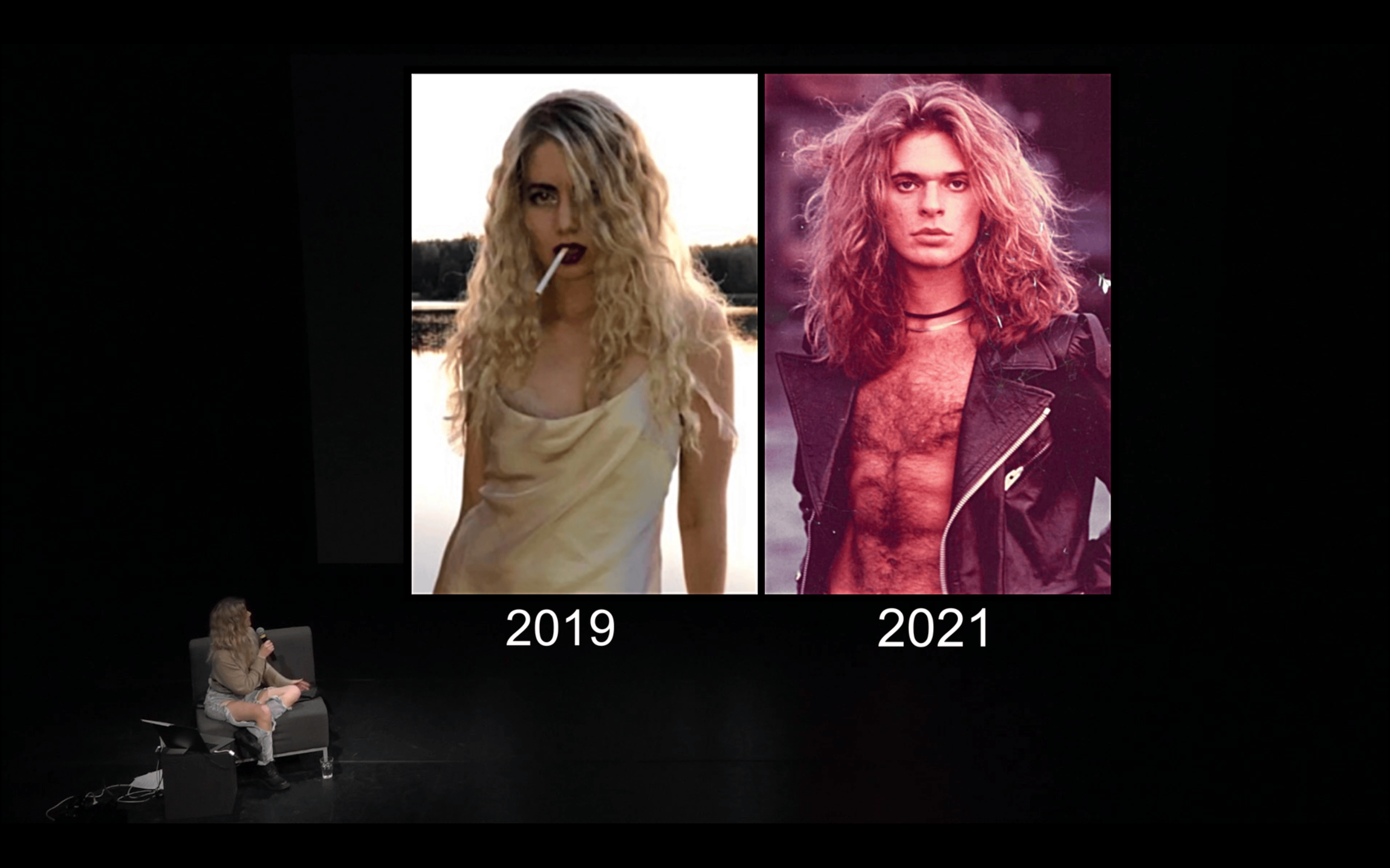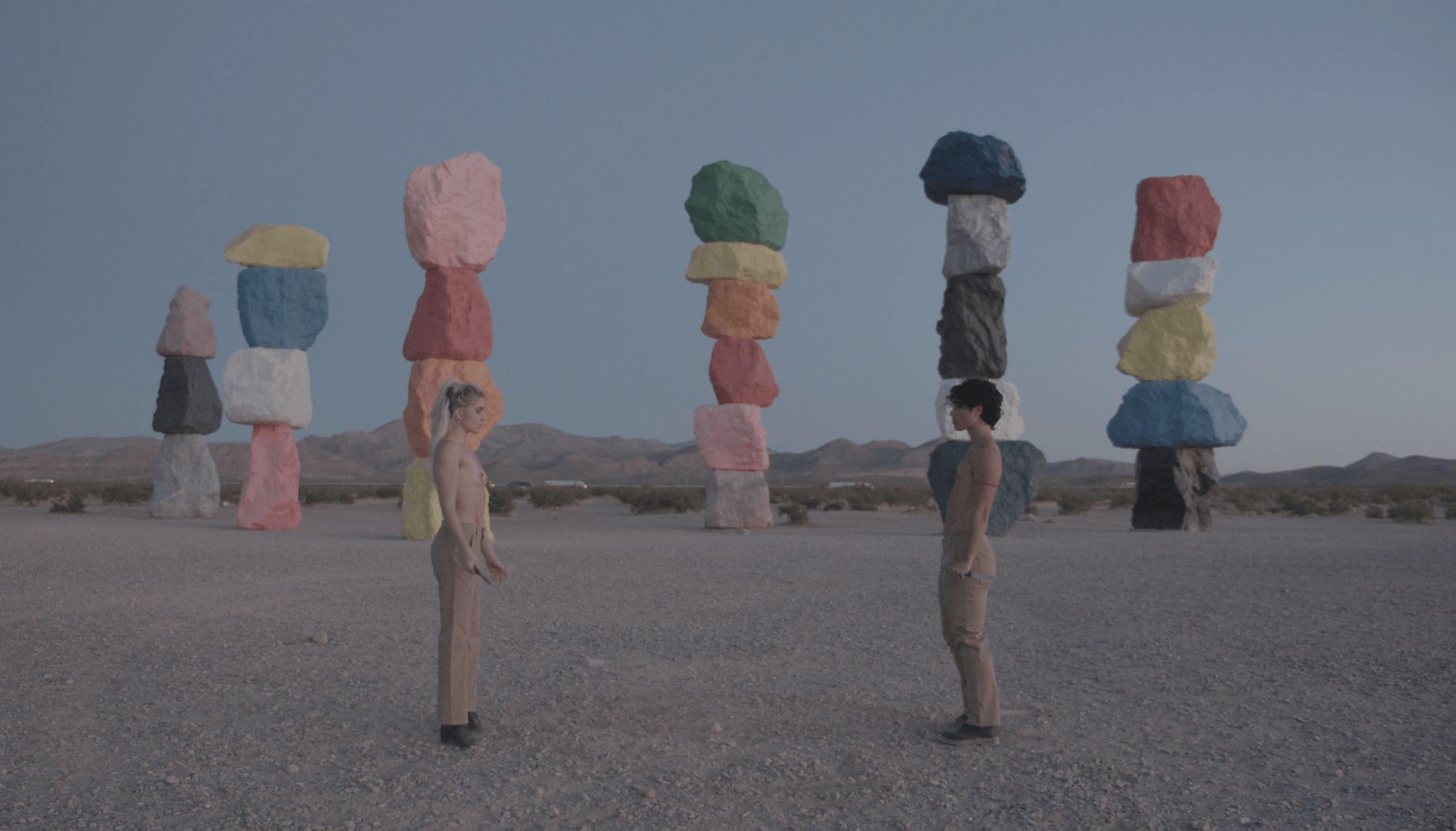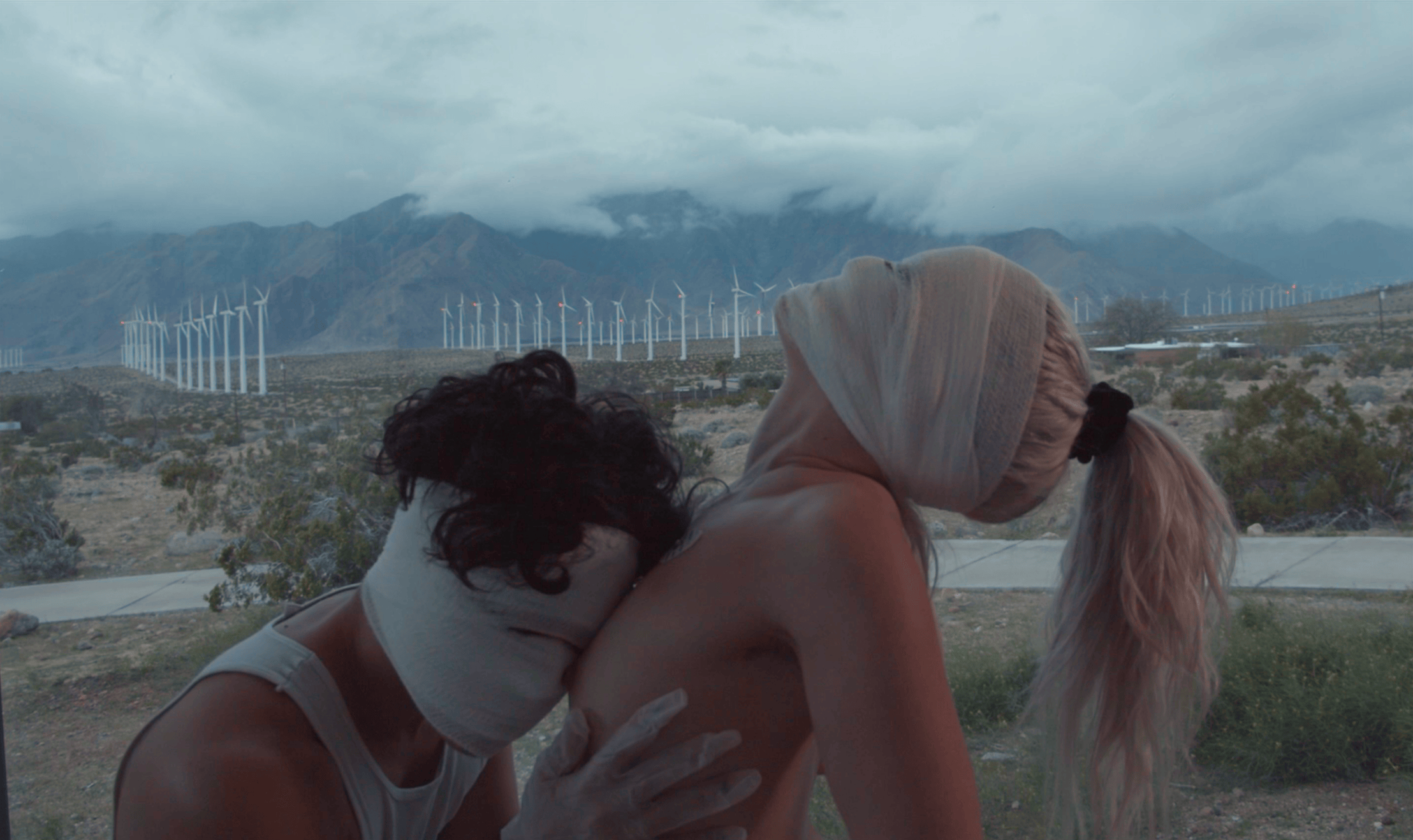 2020 L’année où j’ai commencé ma transition et où mon projet Seek Bromance a vu le jour. Avant le Covid, j’avais passé quatre ans à tourner à l’international avec mon travail sur mon viol et ma vie en tant que femme. La pandémie a brusquement mis fin à cette époque. J’ai commencé un traitement hormonal au début du confinement. Je venais d’atterrir à Los Angeles pour travailler avec mon collaborateur. On a passé la plupart des premiers mois de Covid dans le désert, loin de toute civilisation. On avait le sentiment d’être proche de la fin du monde. Comme si on était les deux dernières personnes restantes sur une planète dont toute vie avait disparu. Dans ce contexte, on ne pouvait pas être infecté par le monde, mais seulement l’un par l’autre. Lors du montage, un ami m’a fait remarquer que ça ressemblait à une allégorie trans : le désert comme départ de l’imagination, le corps comme un monde sur le point d’être réécrit.